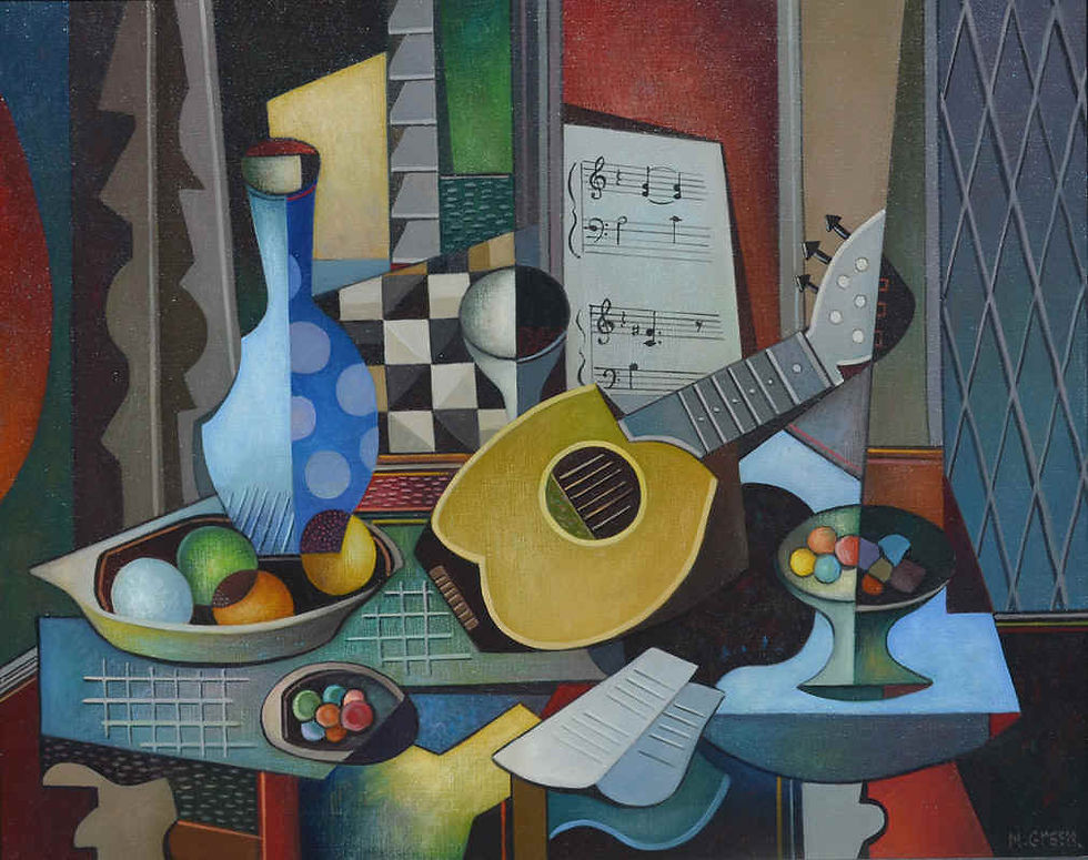 After coming to the United States in the late 1920's, he made his home in Southern California. He continued his studies and work, primarily in realism. He then began developing his own technique and style that embraced primarily cubism and surrealism.